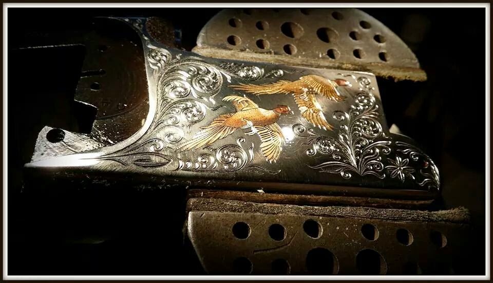 Иска ми се да ви споделя една инкрустация на фазани върху глава на ИЖ 27. Използвах сребро и мед за целта но черешката си остава тониранено на птиците, ефект който c месеци се опитвах да постигна.
